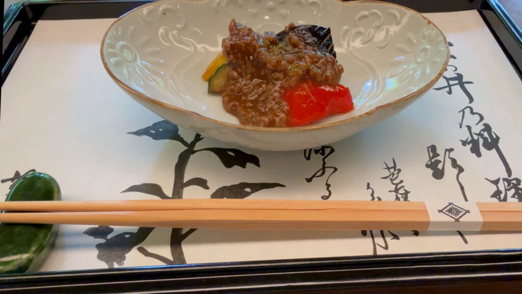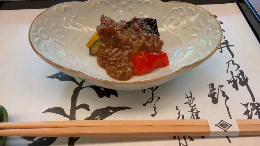 先付け:茄子の肉味噌掛け