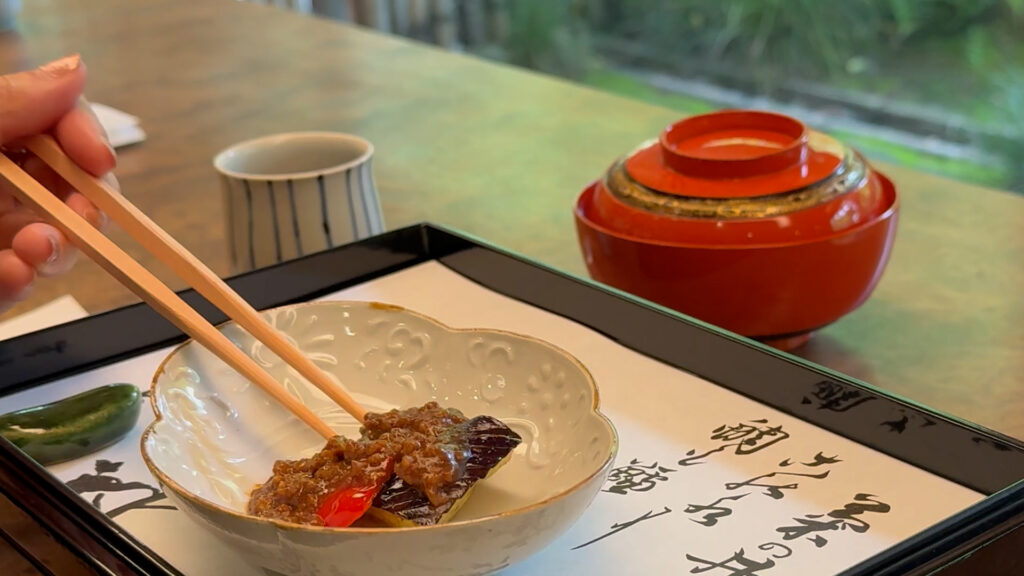 次に、茄子はほんのり甘く感じて、その後に味噌がしっかりと旨味を補ってくれる。