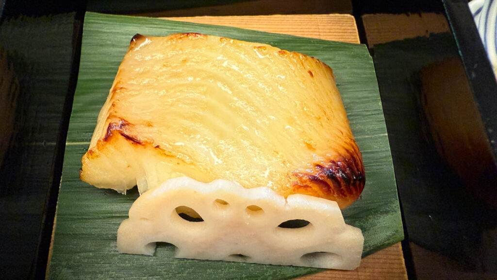 幽庵焼き特有の、醤油・味醂で優しく味付けがされた鰈はとても柔らかくて美味しかった。