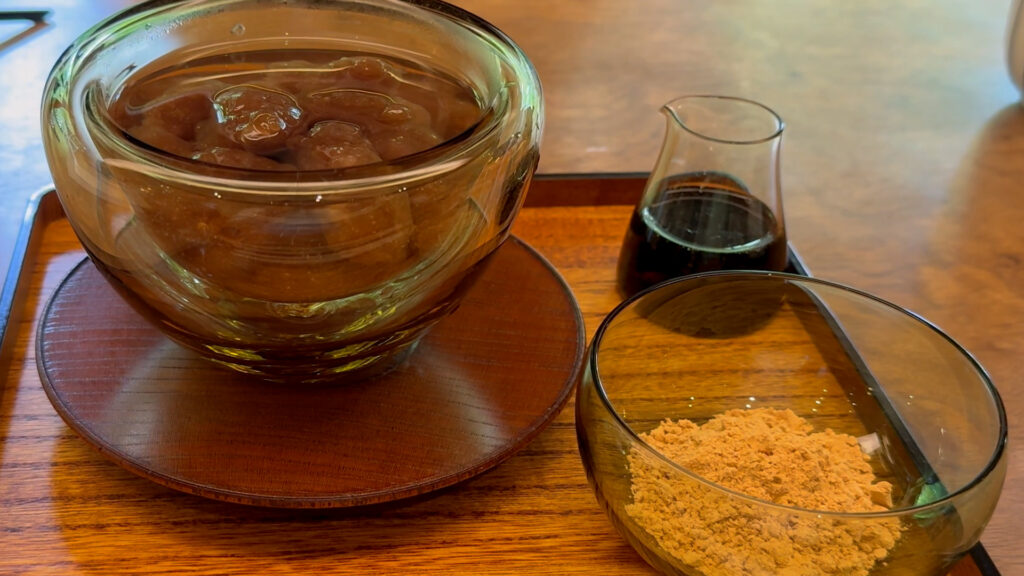 黒蜜 は強いコクと豊かな甘さで、わらび餅の素朴な味わいを引き立てていました。
