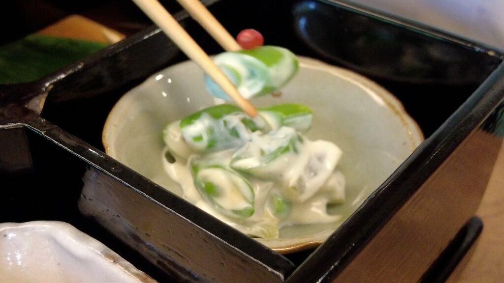 次は、お口直しに酢の物を食べます!