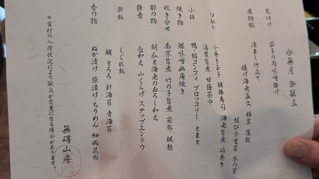 私たちは6月にお店に伺ったので、水無月の献立がありました。