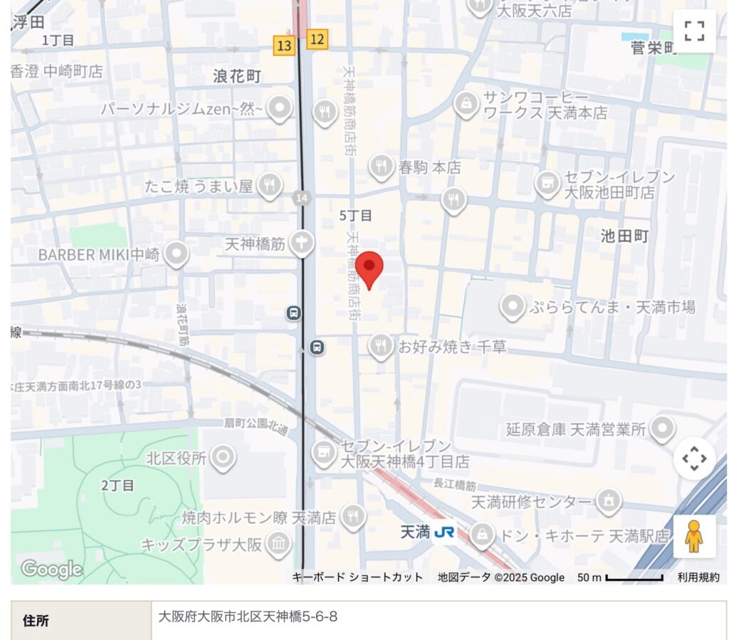 天神橋筋六丁目の商店街にあります!→詳しく見る!