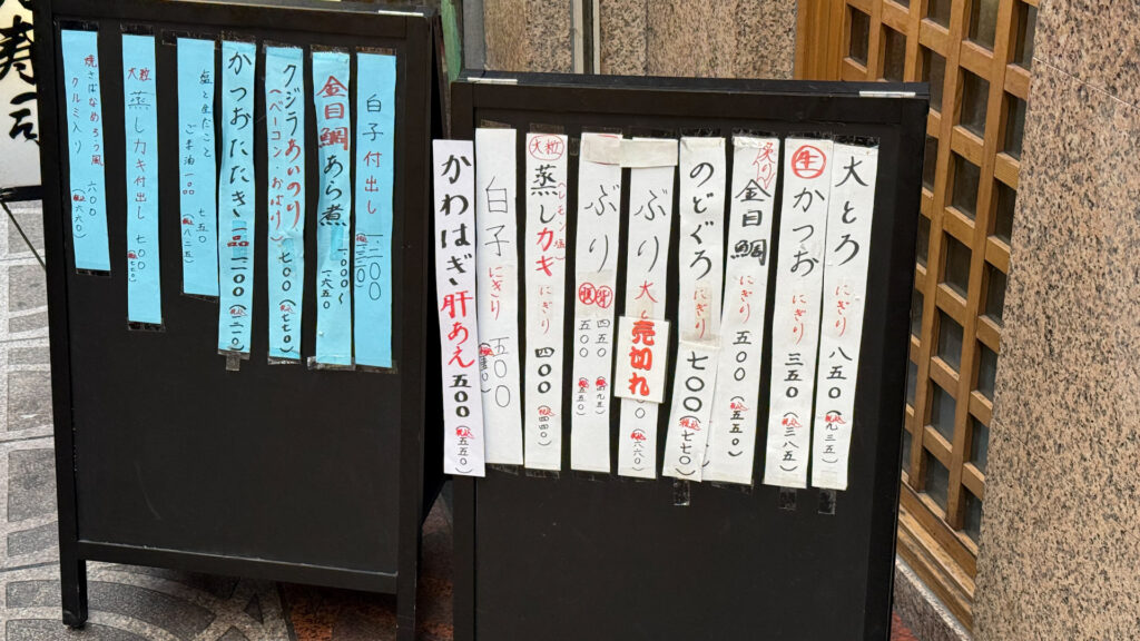 店先には旬ネタの看板があって、今日はどの旬ネタがあるのか掲載されています!