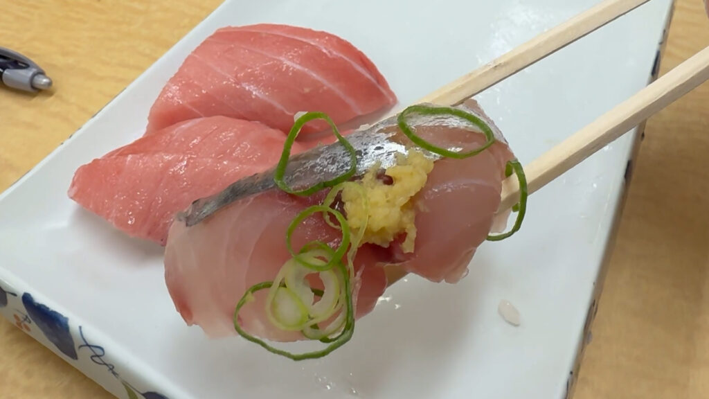 アジ:脂の乗りが良く、私のような青魚好きにはたまらないネタでした。