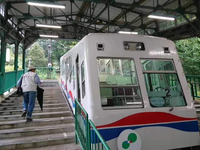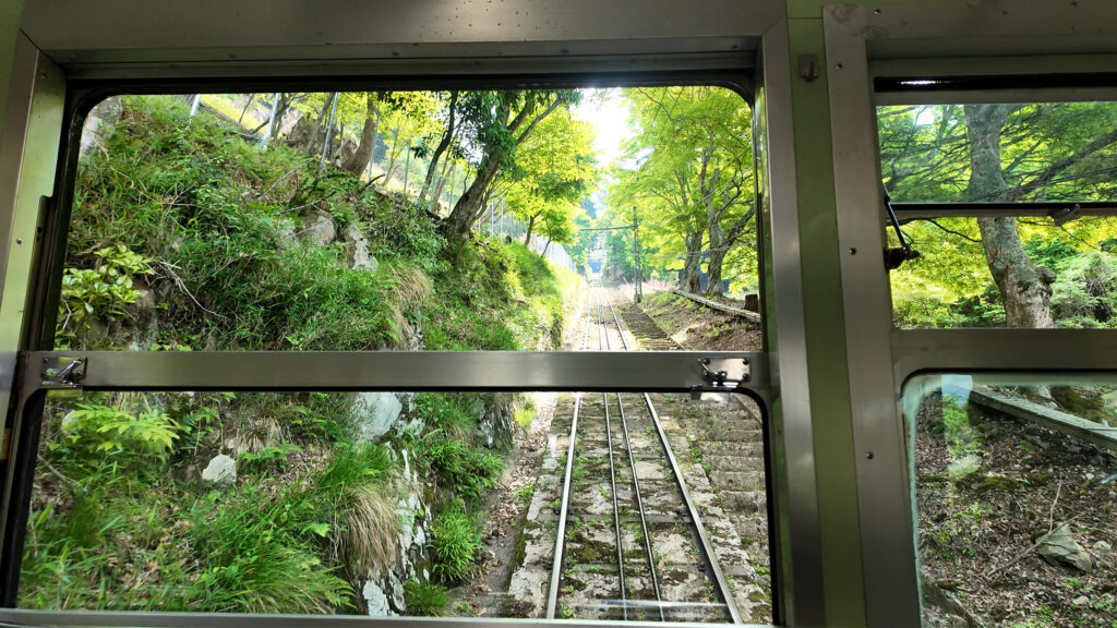 ケーブルカーは森林の中を登っていく感じで、春は新緑が綺麗でした。