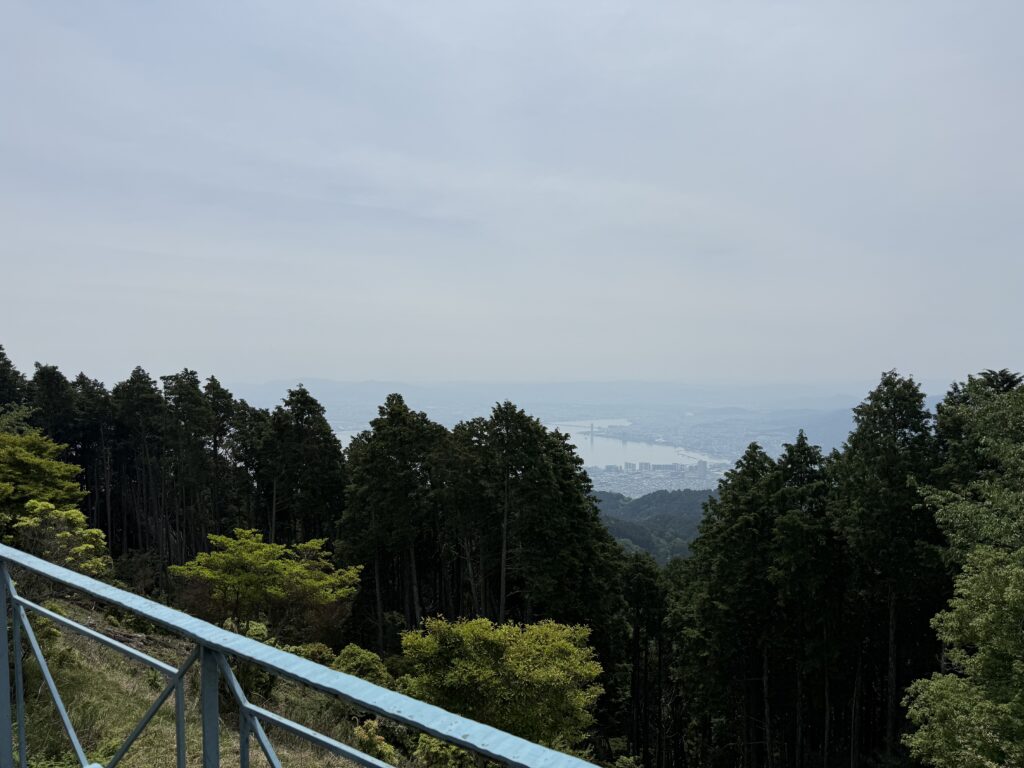 園内の高台にある展望スペースからは、琵琶湖と京都市街が一望できます。