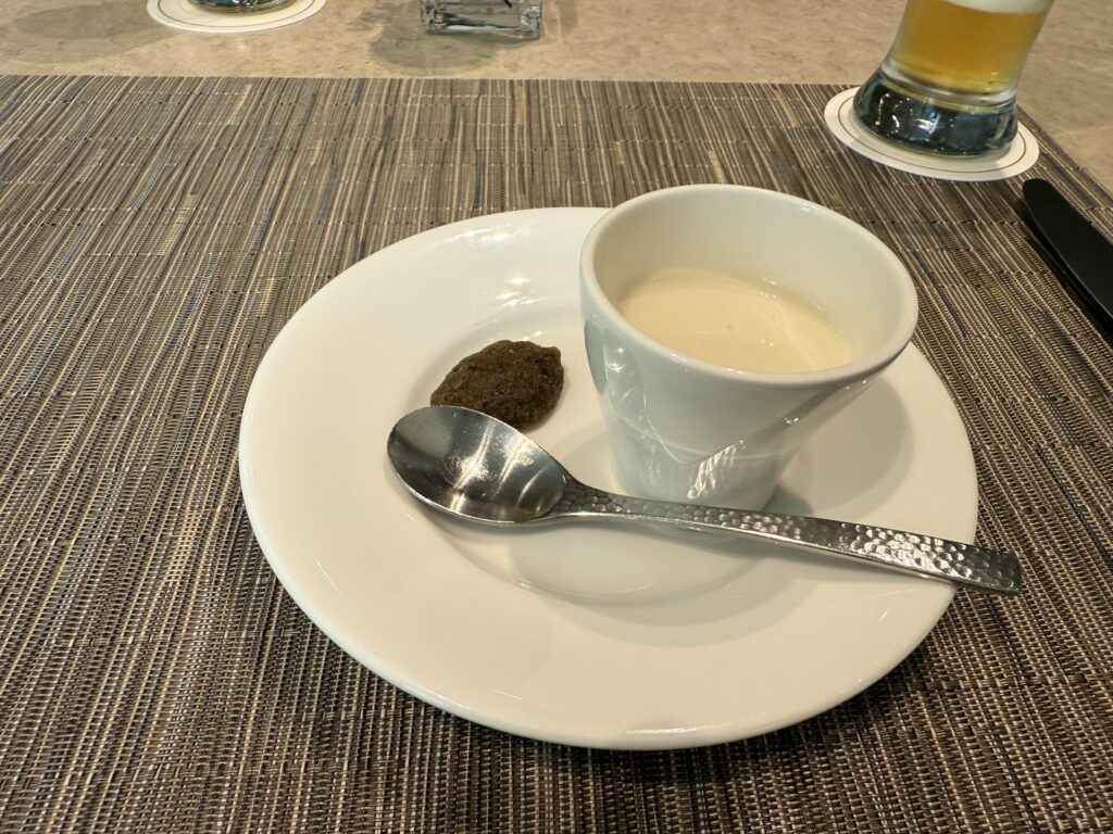 淡いベージュのスープが、滑らで口の中にスーッと広がって、まず、新玉ねぎの濃厚な香りと甘さがくるわ。。