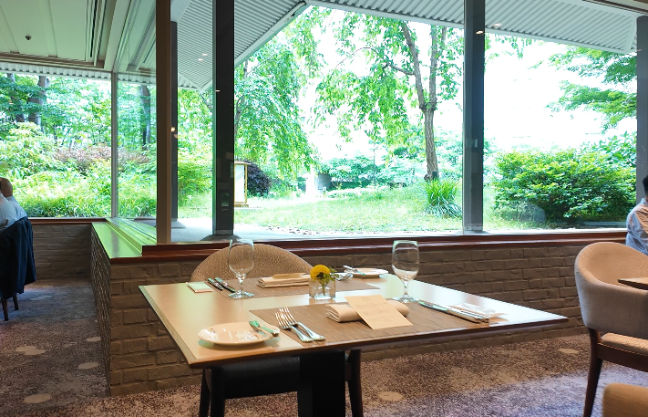そう。レストランの大きな窓から見えるのは、手入れの行き届いた中庭と、やさしい木々の揺れ。
