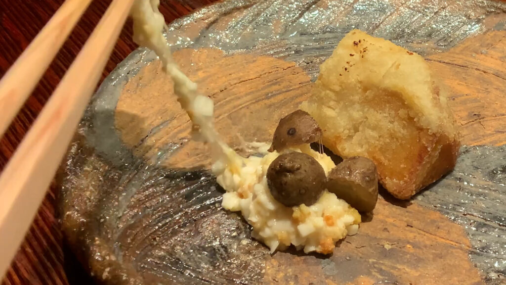 自然薯の粘りの強さの中にシャクッとした食感があり、山の香りがくるわ。。