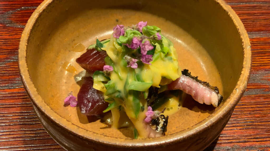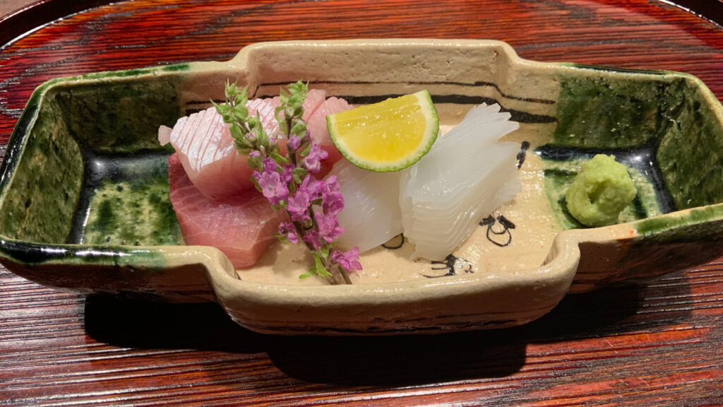 いろんな香りや味が一気に押し寄せる向付を楽しみました。