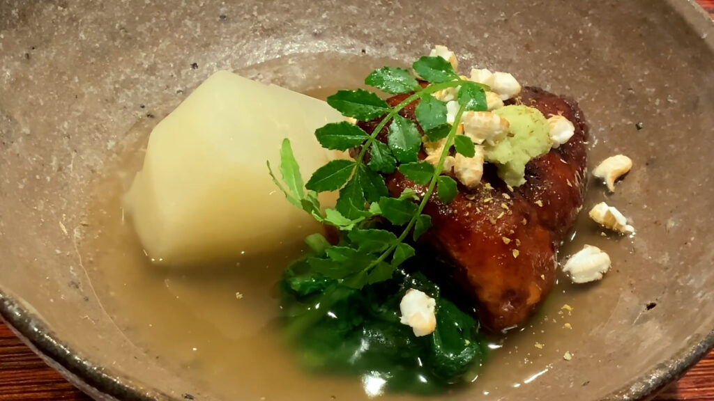 焚き合わせは聖護院大根を炊いたものとあん肝の照り焼きでした!