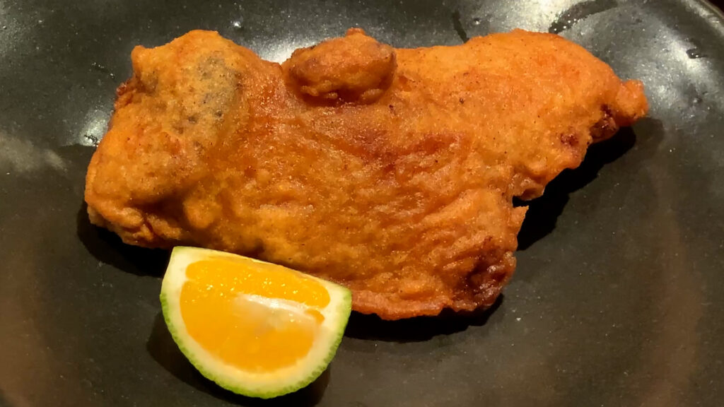 フグの嘴から頬肉の辺りの唐揚げでした。