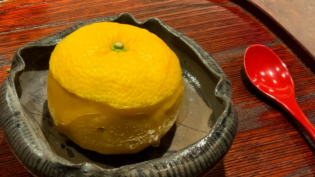 蓋代わりのゆずを開けた瞬間、ふわっと立ち上がる柑橘の香りが印象的やわ!