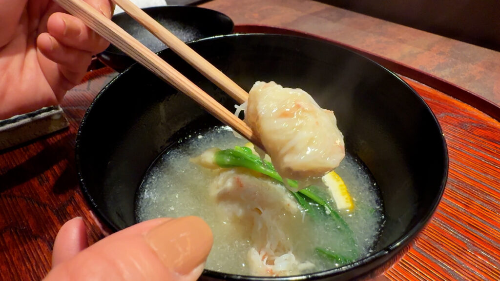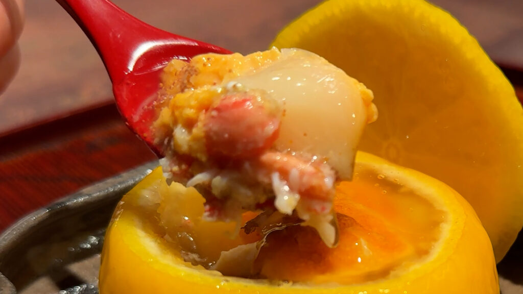 それで、柚子の酸味は前に出すぎず、あくまで香りのアクセントとして働き、蟹の旨みを引き立ててます。