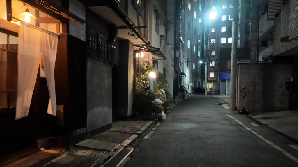 大通りから細い筋道にお店があります。