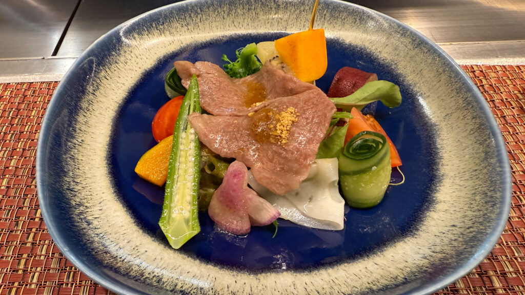 前菜は鉄板で用意するのではなく、サラダのお皿が来ました!