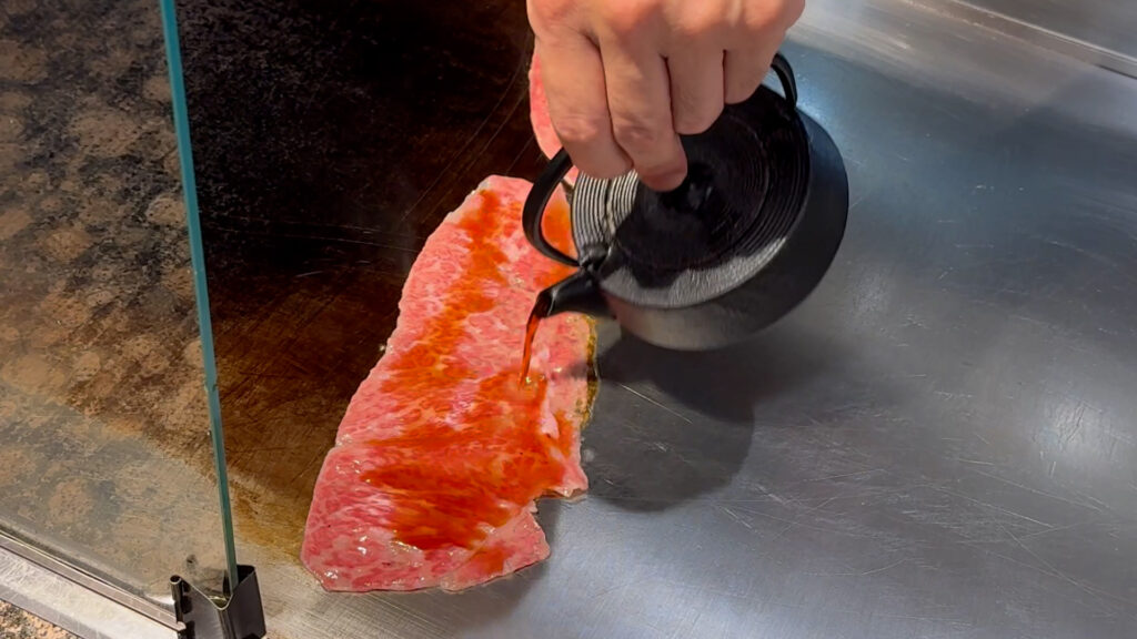 数秒後に私たちは、割下の香ばしい香りに包まれます。。