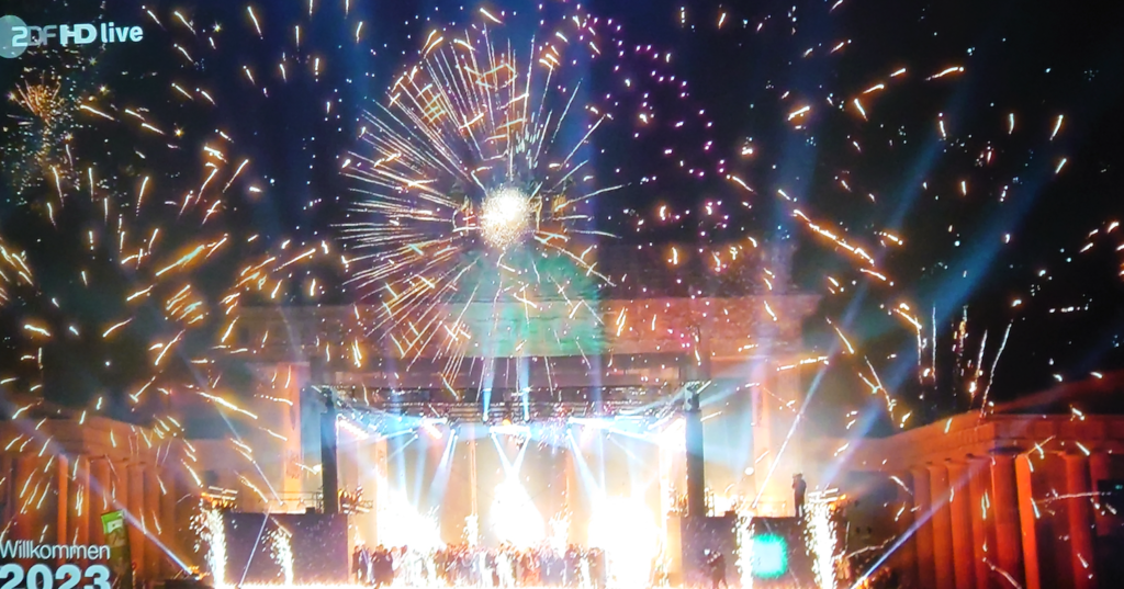 例年であれば、ZDFという放送局の、ブランデンブルク門からの大規模なライブ中継が恒例です。