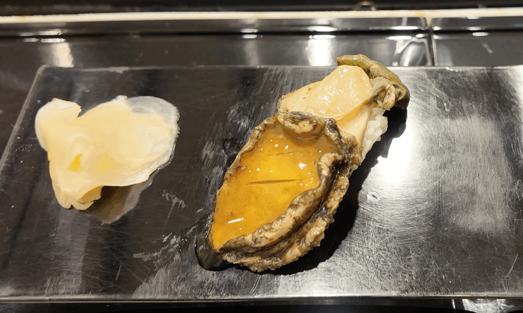 旨くて柔らかいのに、ちゃんとアワビの歯ごたえが残っていて妙絶なネタでした。