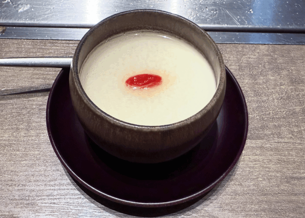 杏仁豆腐のなめらかでトロふわっとした食感がよく、少し酸味の効いたソースが上にかかっていました。