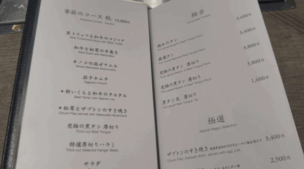 焼肉の代名詞とも言えるカルビが見当たらないですが、こちらのお店はどうやらタンに力を入れている様子。