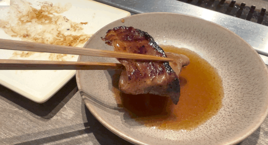 こちらは脂身が多いので、香ばしさを出すように片面をしっかりカリカリめに焼き、反対側をさっと炙って食べるそうです。
